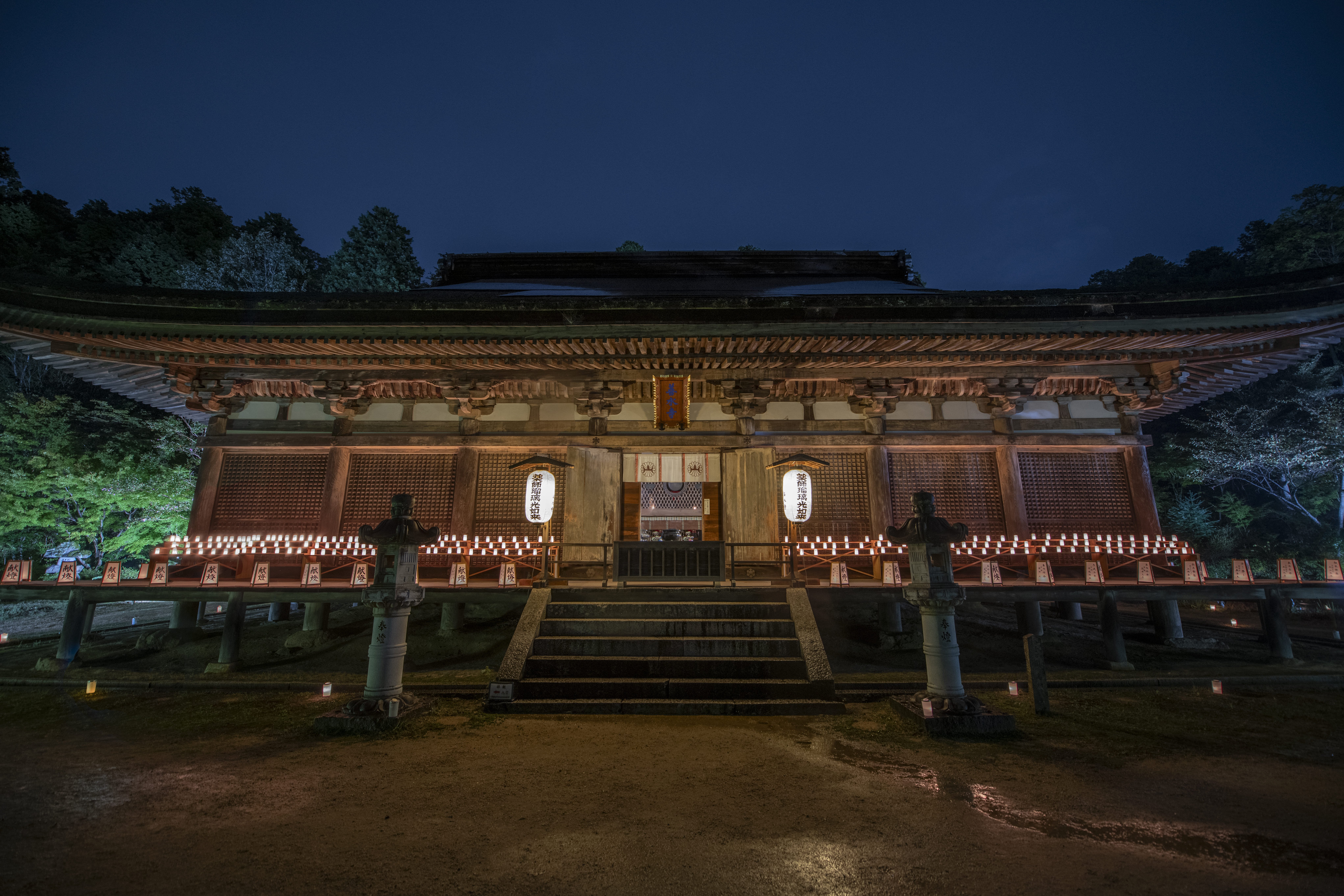 毎年10月8日に国宝善水寺の本堂の回廊に千本の灯明をともし