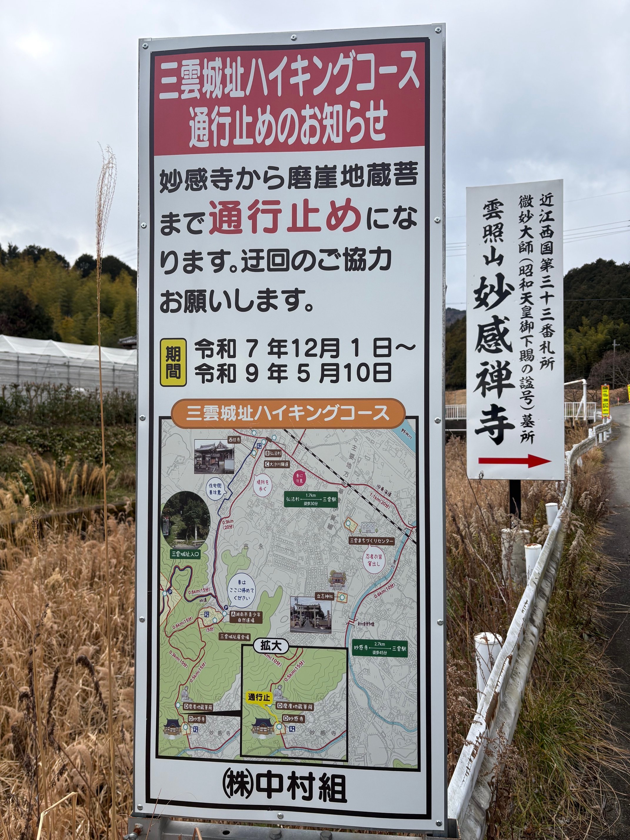 令和9年(2027年)5月10日まで砂防工事のため通行止めとなっております。